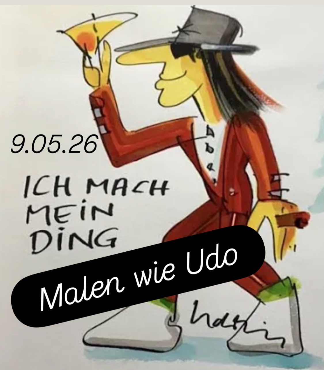 Inspiriert von Udo Lindenberg kannst Du in diesem Kurs der Aquarelltechnik lässig und cool begegnen.