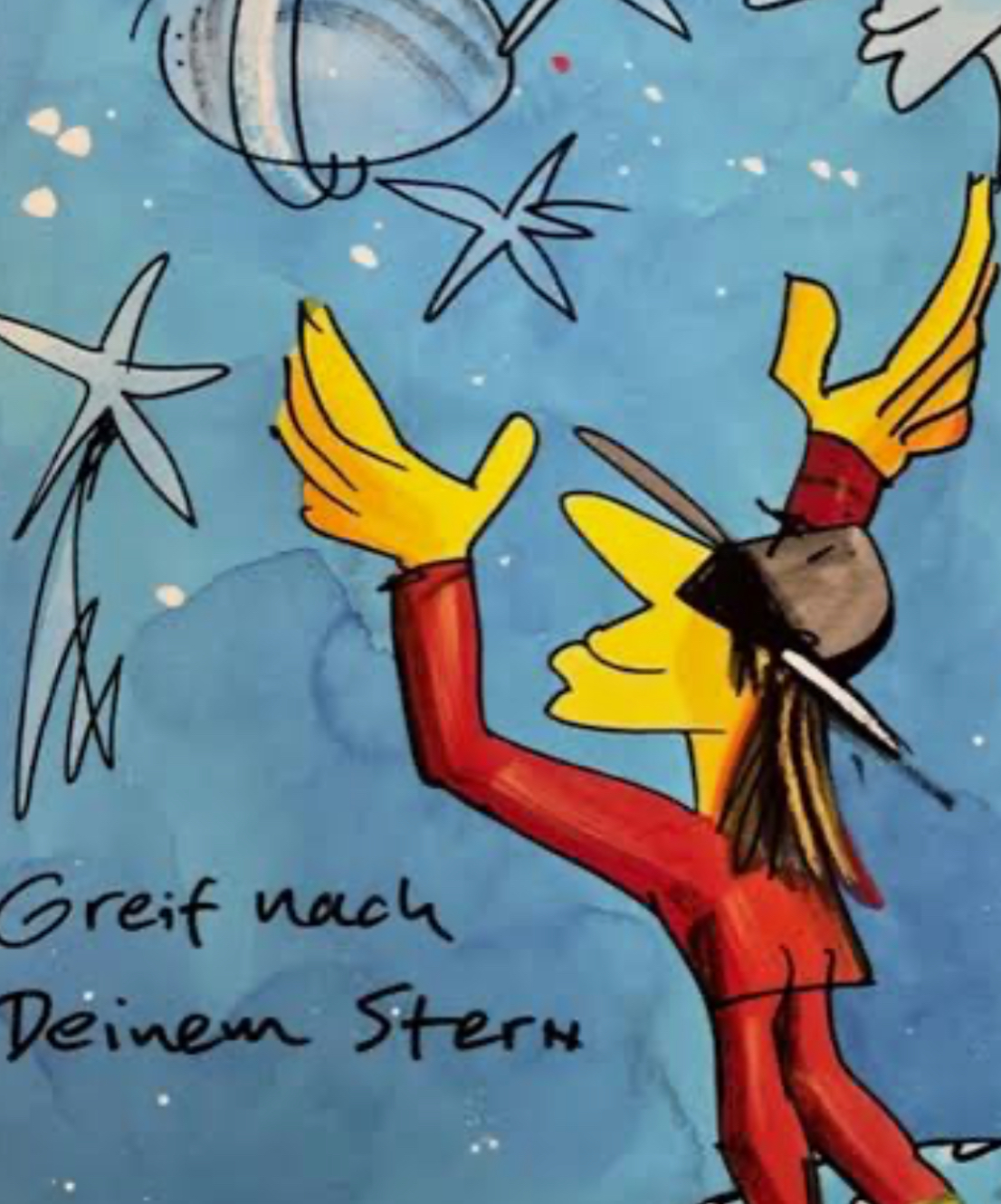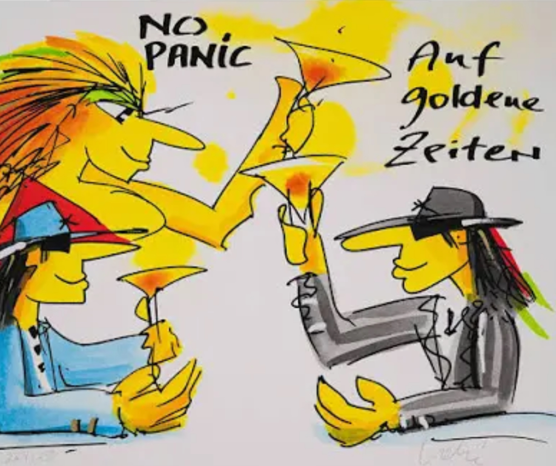 Seine unvergleichbaren Bilder in Kombination mit den Texten haben eine ganz spezielle Wirkung die ich sehr schätze. Unter all der Panik im Außen lernt er uns doch eine gewisse Farbigkeit und Hoffnung zu wahren.